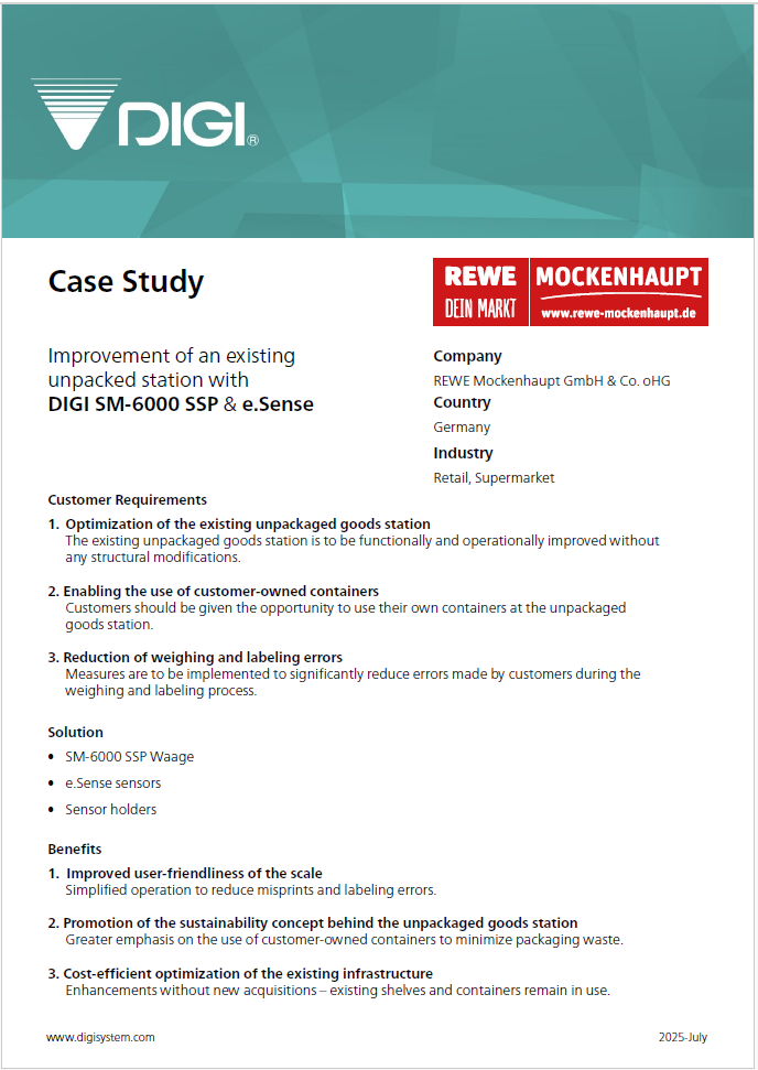 The optimization of the unpackaged goods station using DIGI technology significantly improved usability and efficiency. The customized solution simplified operation, reduced weighing and labeling errors, and delivered lasting added value. This technical upgrade has enhanced the overall customer experience while supporting the store’s sustainability goals.